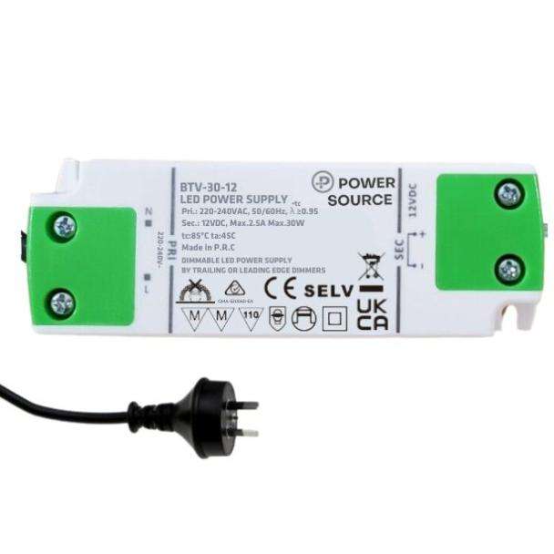 Power Source BTV-30-24-AUP 24V 30-WATT AC TRIAC Dimmable LED Driver with Flex and Plug
