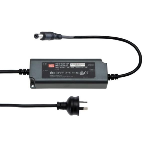 MEAN WELL NPF-60-12-AUP-P1J 12V 60 WATT LED Driver with Flex and Plug, and 2.1mm ID DC Output Connector.